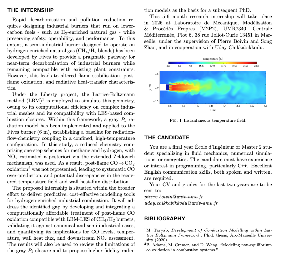 You are a final year Ecole d’Ingénieur or Master 2 student specializing in fluid mechanics, numerical simulations, or energetics. The candidate must have experience or interest in programming, particularly C++. Excellent English communication skills, both spoken and written, are required.
