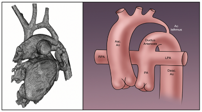 Réaliser des simulations numériques de l’écoulement à travers une arche aortique présentant une coarctation, incluant :